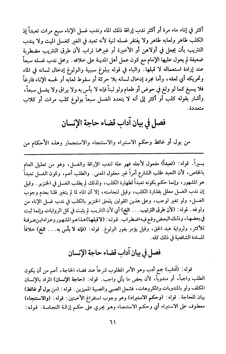 قوله : 16 ( آداب ) : جمع أدب وهو الأمر المطلوب شرعاً عند قضاء الحاجة ، أعم من أن يكون الطلب واجباً أو مندوباً ؛ لأن بعض ما يأتى واجب .
