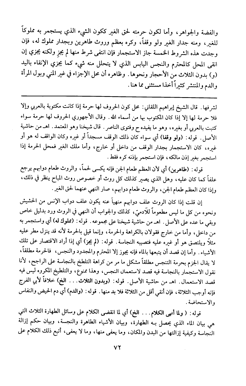 قوله : 16 ( مملوك له ) : أي واستجمر به من داخل ، وأما من خارج فقولان : بالكراهة والحرمة . وإنما قيل بالحرمة لأنه قد ينزل مطر عليه مثلا ويلتصق هو أو غيره عليه فتصيبه النجاسة .