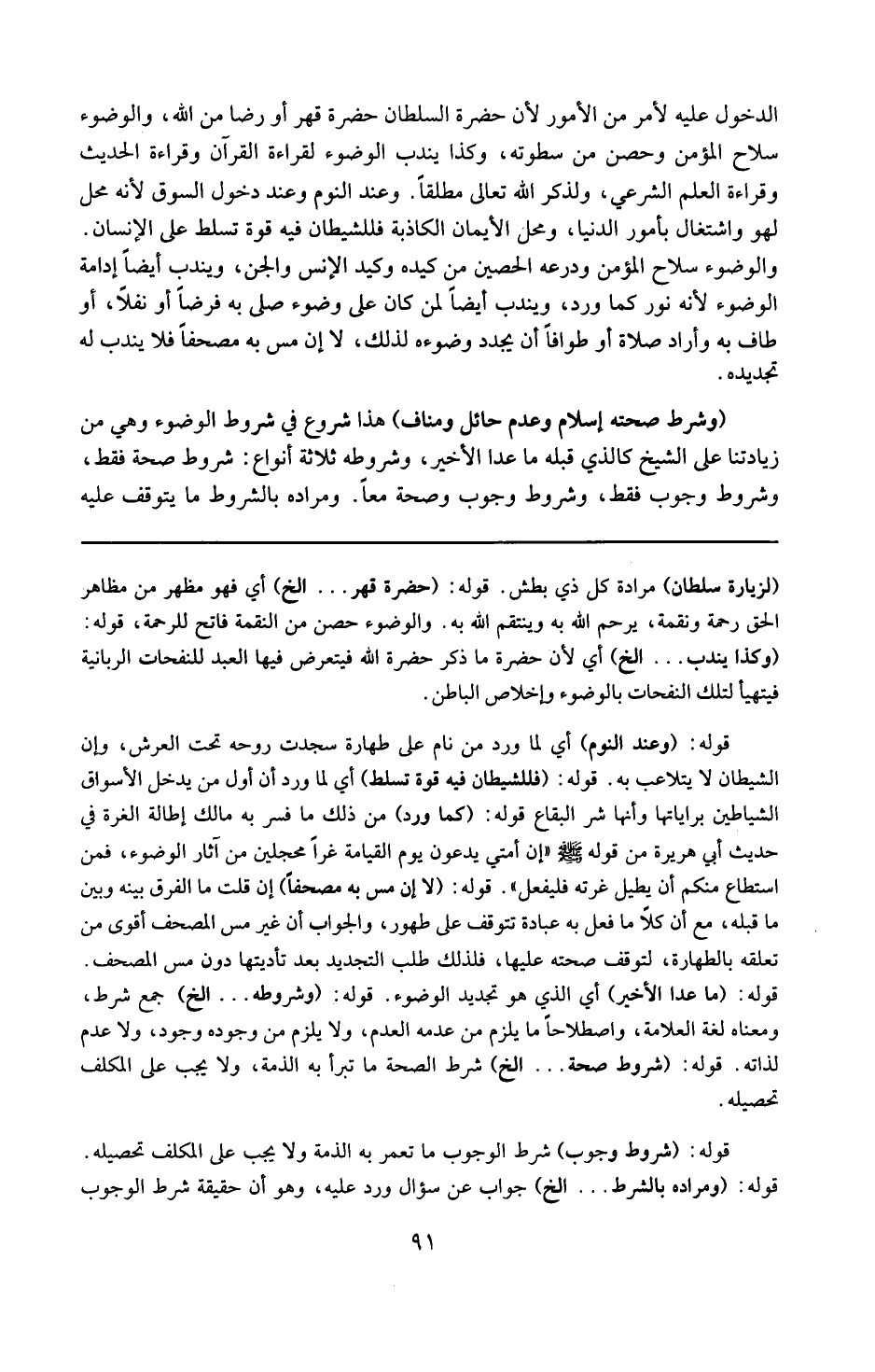 قوله : 6 ( وعند النوم ) : أى لما ورد : ( من نام على طهارة سجدت روحه تحت العرش ، وإن الشيطان لايتلاعب به ) .