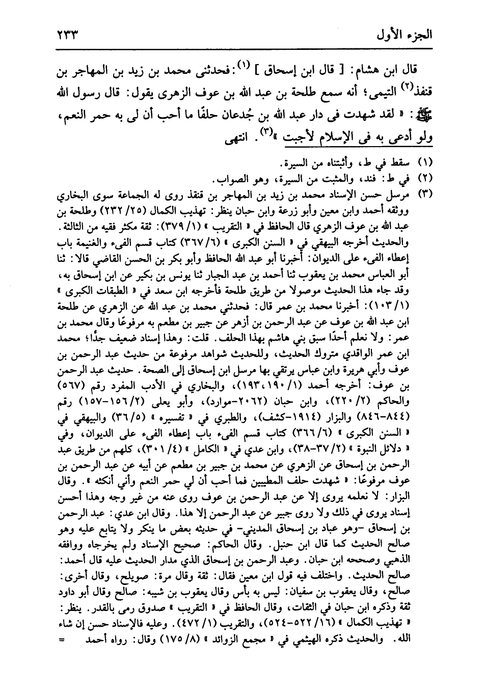 قَالَ ابْن هِشَام قَالَ ابْن إِسْحَاق فَحَدثني مُحَمَّد بن زيد بن المُهَاجر بن قنفذ التَّيْمِيّ أَنه سمع طَلْحَة بن عبد الله بن عَوْف الزُّهْرِيّ يَقُول قَالَ رَسُول الله