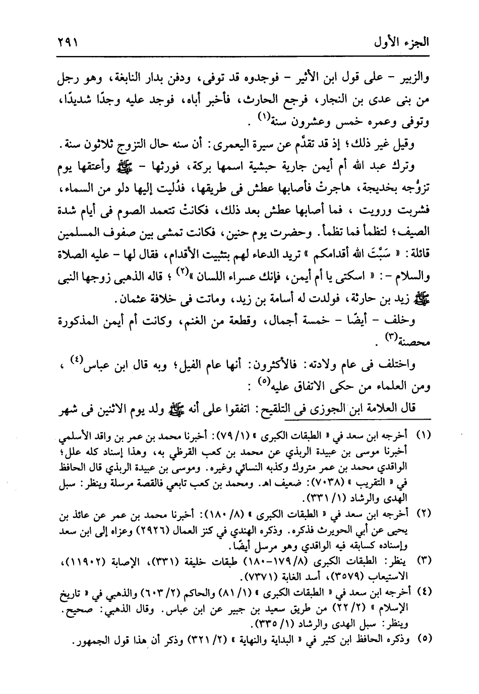 زيد بن حَارِثَة فَولدت لَهُ أُسَامَة بن زيد وَمَاتَتْ فِي خلَافَة عُثْمَان وَخلف أَيْضا خَمْسَة اجمال وَقطعَة من الْغنم وَكَانَت أم أَيمن الْمَذْكُورَة مُحصنَة وَاخْتلف فِي عَام وِلَادَته فالأكثرون أَنَّهَا عَام الْفِيل وَبِه قَالَ ابْن عَبَّاس وَمن الْعلمَاء من حكى الِاتِّفَاق عَلَيْهِ قَالَ الْعَلامَة ابْن الْجَوْزِيّ فِي التلقيح اتَّفقُوا على أَنه