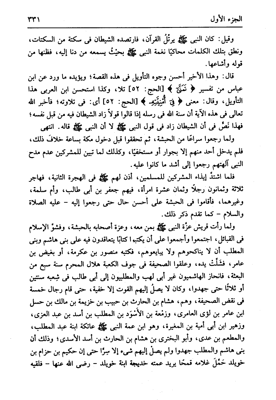قَالَه انْتهى وَلما رجعُوا سرَاعًا من الْحَبَشَة ثمَّ تحققوا قبل دُخُول مَكَّة بساعة خلاف ذَلِك فَلم يدْخل أحد مِنْهُم إِلَّا بجوار أَو مستخفياً وَكَذَلِكَ لما تبين للْمُشْرِكين عدم مدح النَّبِي آلِهَتهم رجعُوا إِلَى أَشد مَا كَانُوا عَلَيْهِ فَلَمَّا اشْتَدَّ إِيذَاء الْمُشْركين للْمُسلمين اذن لَهُم