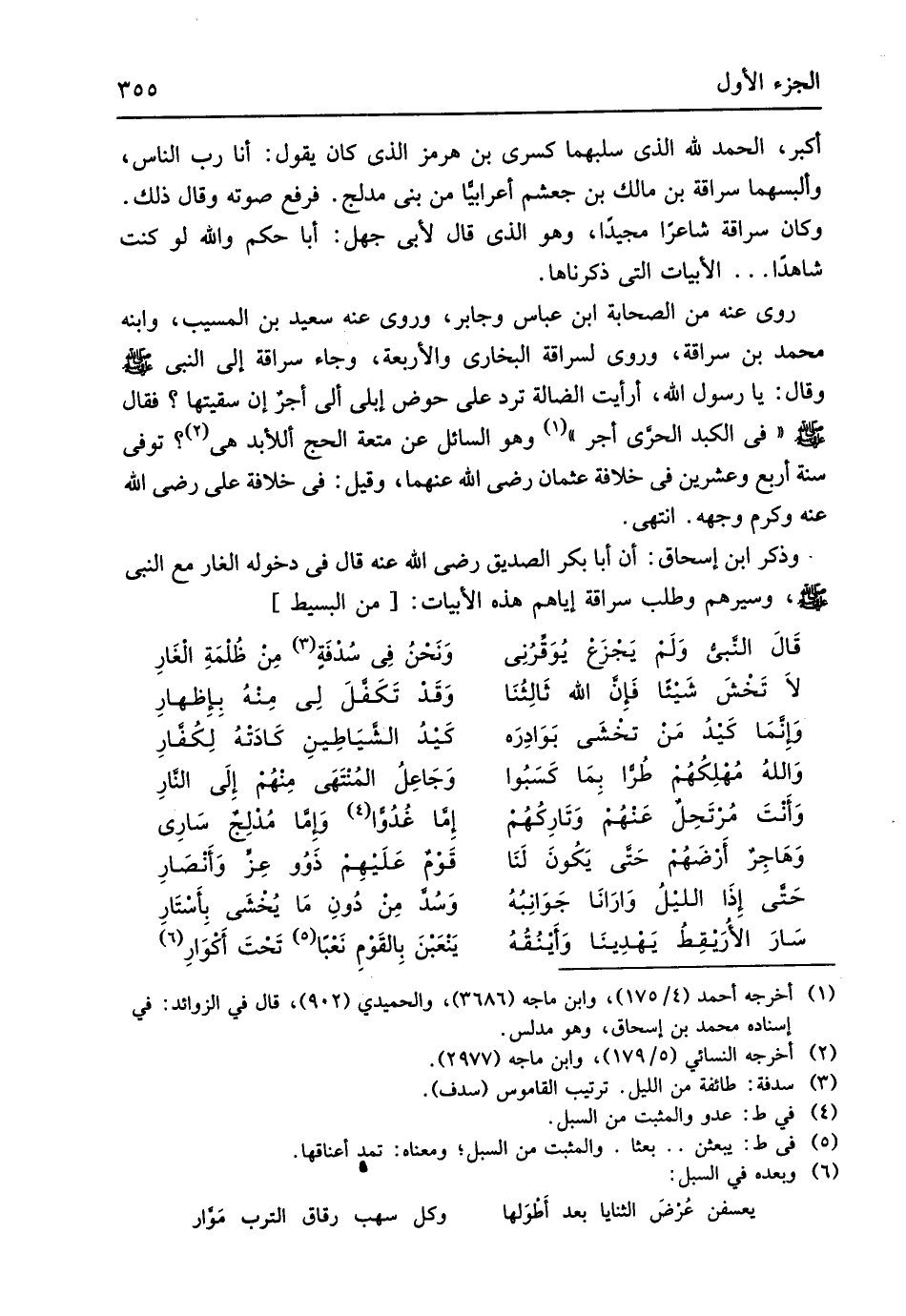وسيرهم وَطلب سراقَة إيَّاهُم هَذِه الأبيات // (من الْبَسِيط) //