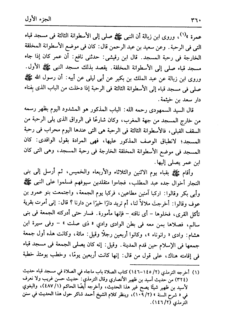 صلى إِلَى الأسطوانة الثَّالِثَة فِي مَسْجِد قبَاء الَّتِي فِي الرحبة وَعَن سعيد بن عبد الرَّحْمَن قَالَ كَانَ فِي مَوضِع الأسطوانة المخلقة الْخَارِجَة فِي رحبة الْمَسْجِد قَالَ ابْن رقيشي حَدثنِي نَافِع أَن عمر كَانَ إِذا جَاءَ مَسْجِد قبَاء صلى إِلَى الأسطوانة المخلقة يقْصد بذلك مَسْجِد النَّبِي