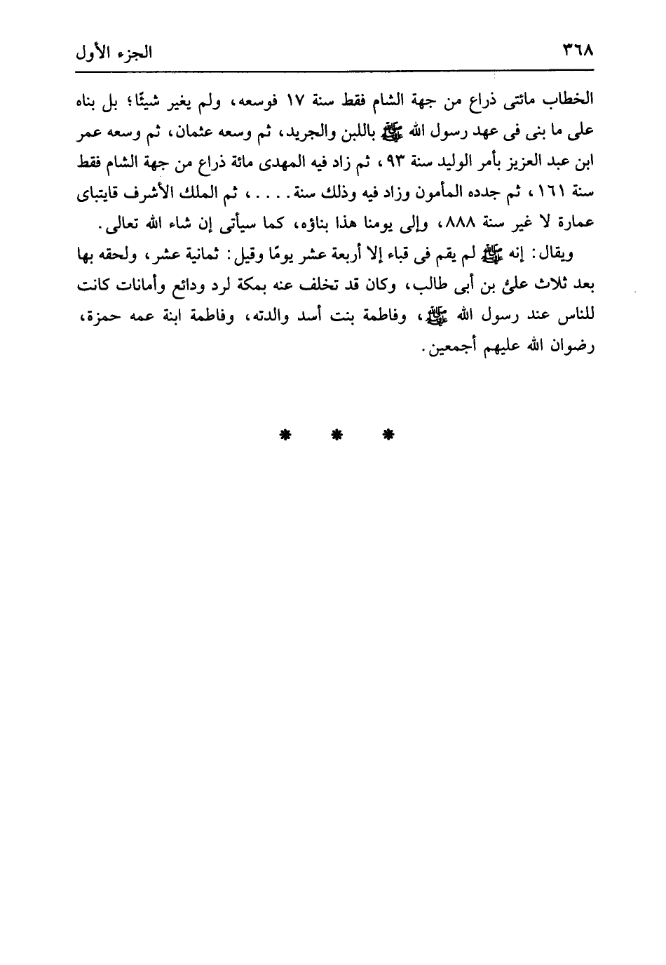 الْخطاب مِائَتي ذِرَاع من جِهَة الشَّام فَقَط سنة 17 فوسعه وَلم يُغير شَيْئا بل بناه على مَا بنى فِي عهد رَسُول الله