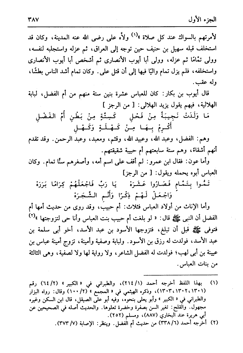 وهم الْفضل وَعبد الله وَعبيد الله وَقثم ومعبد وَعبد الرَّحْمَن وَقد تقدم أَنهم أشقاء وهم سِتَّة سابعتهم أم حَبِيبَة شقيقتهم وَأما عون فَقَالَ ابْن عَمْرو لم أَقف على اسْم أمه وأصغرهم سنا تَمام وَكَانَ الْعَبَّاس أَبوهُ يحملهُ وَيَقُول // (من الرجز) //