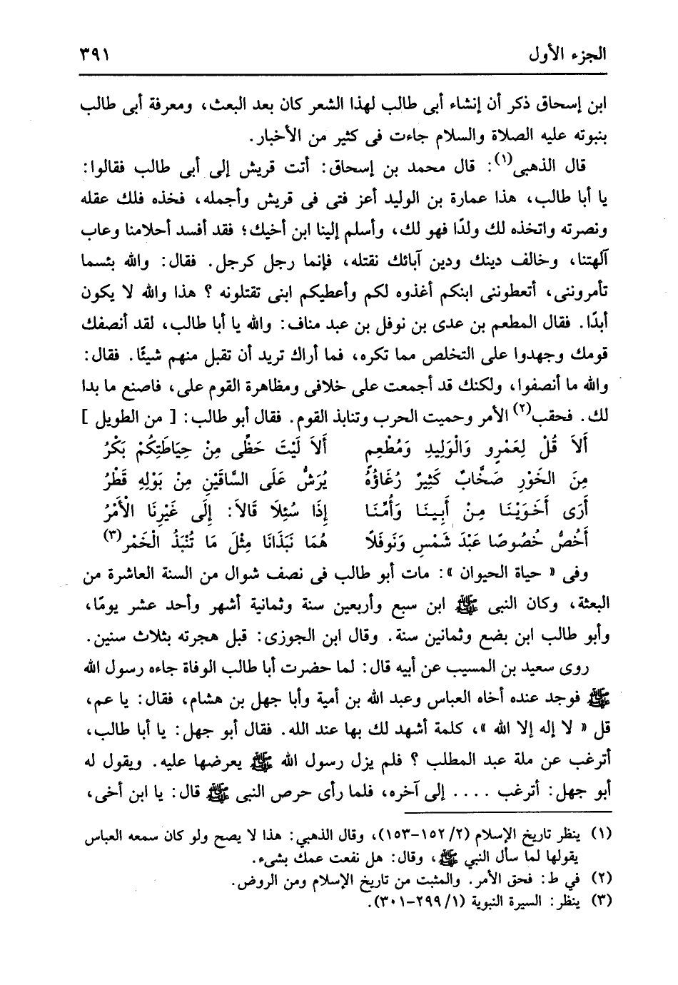 وَفِي حَيَاة الْحَيَوَان مَاتَ أَبُو طَالب فِي نصف شَوَّال من السّنة الْعَاشِرَة من الْبعْثَة وَكَانَ النَّبِي