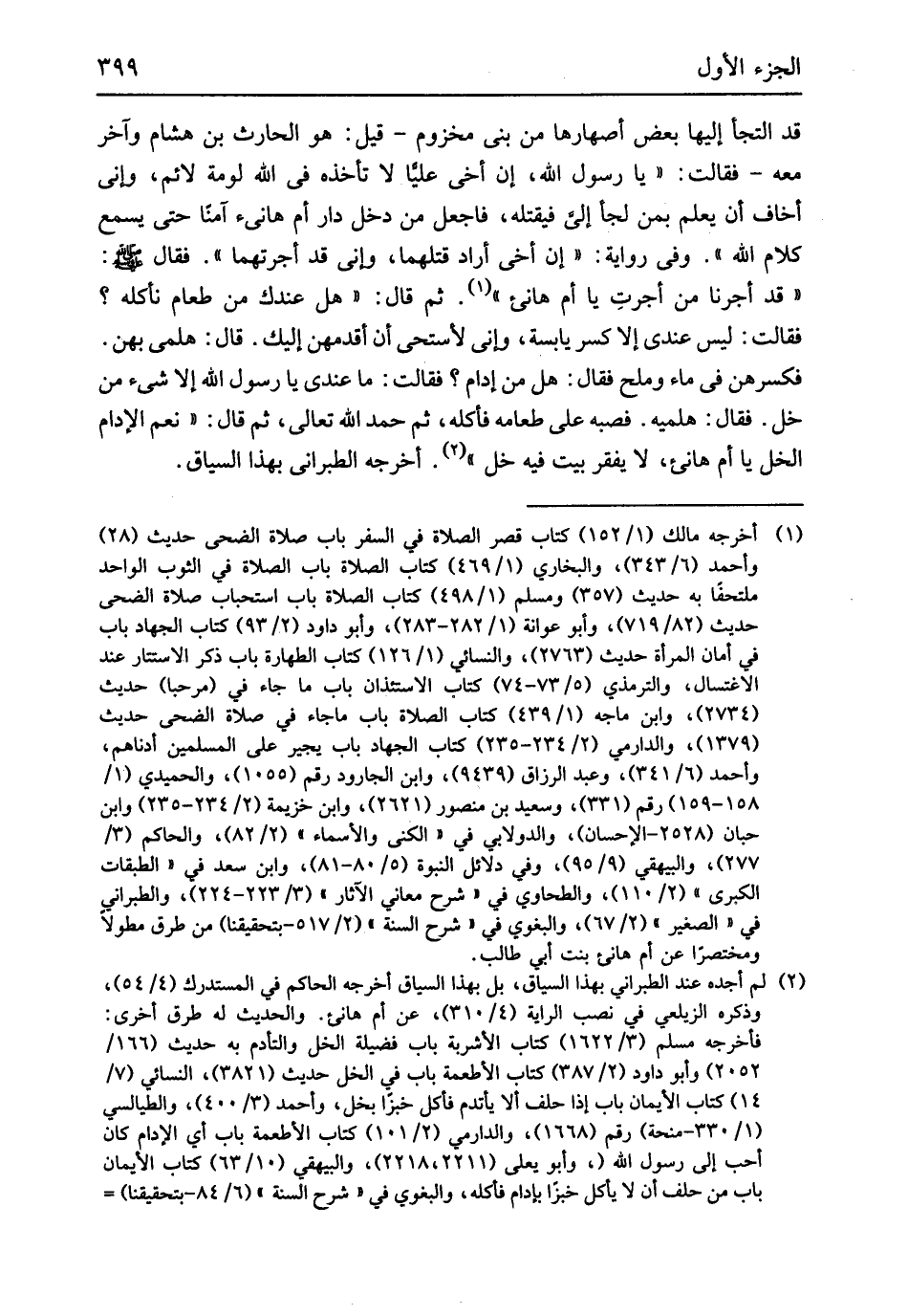 قد التجأ إِلَيْهَا بعض أصهارها من بني مَخْزُوم قيل هُوَ الْحَارِث بن هَاشم وَآخر مَعَه فَقَالَت يَا رَسُول الله إِن أخي عليا لَا تَأْخُذهُ فِي الله لومة لائم وَأَن أَخَاف أَن يعلم بِمن لَجأ إِلَيّ فيقتله فَاجْعَلْ من دخل دَار أم هَانِيء آمنا حَتَّى يسمع كَلَام الله وَفِي رِوَايَة إِن أخي اراد قَتلهمَا إِنِّي قد اجرتهما فَقَالَ