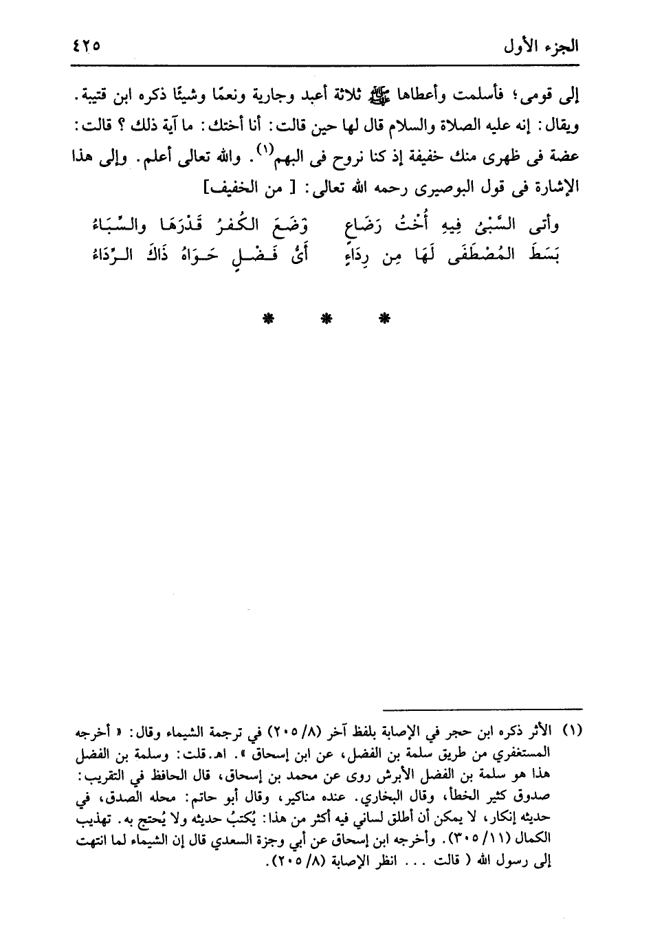 (بسط الْمُصْطَفى لَهَا من رداءٍ ... أيّ فضلٍ حواه ذَاك الرّداء)