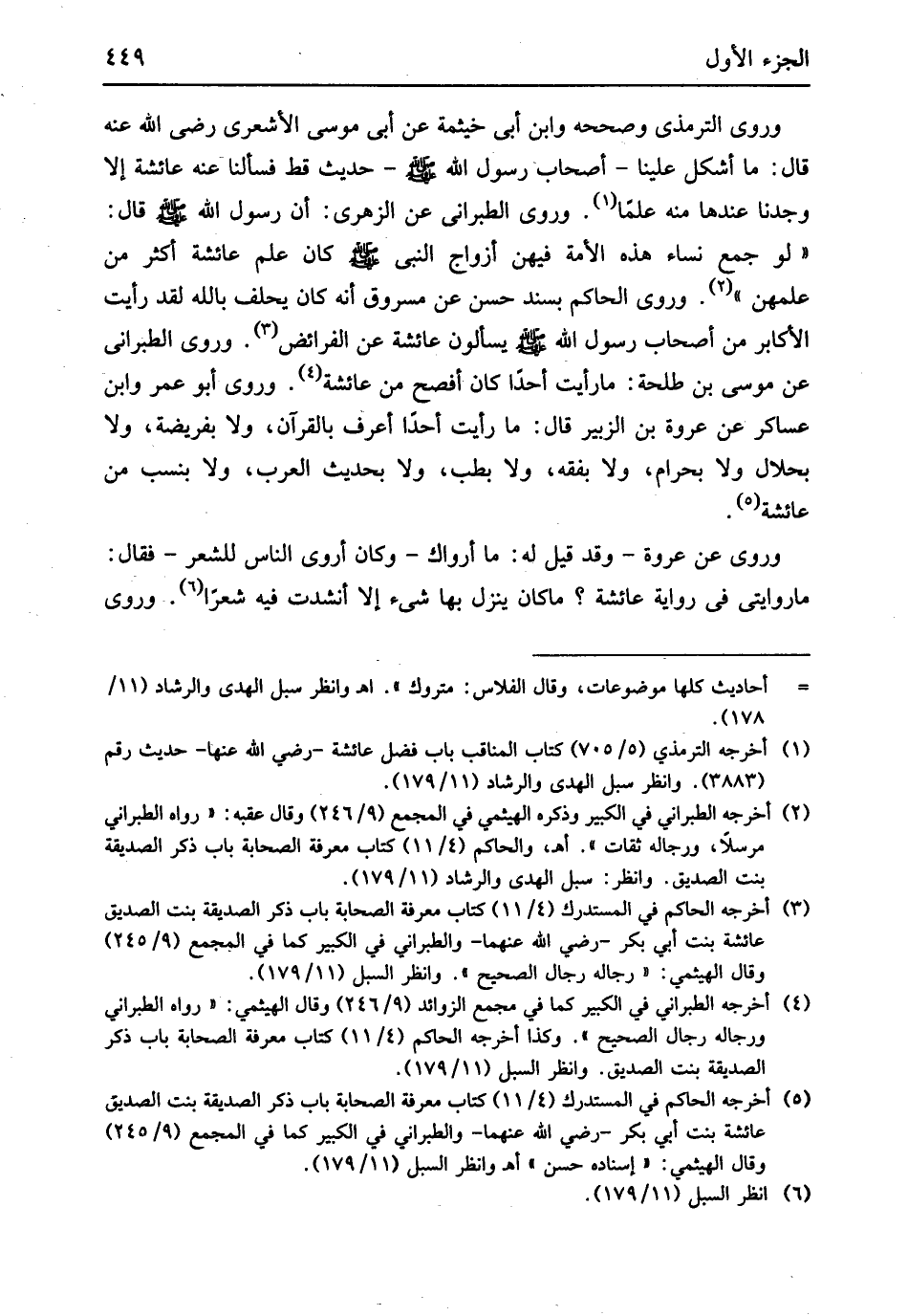 حَدِيث قطّ فسألنا عَنهُ عَائِشَة إِلَّا وجدنَا عِنْدهَا مِنْهُ علما وروى الطَّبَرَانِيّ عَن الزُّهْرِيّ أَن رَسُول الله