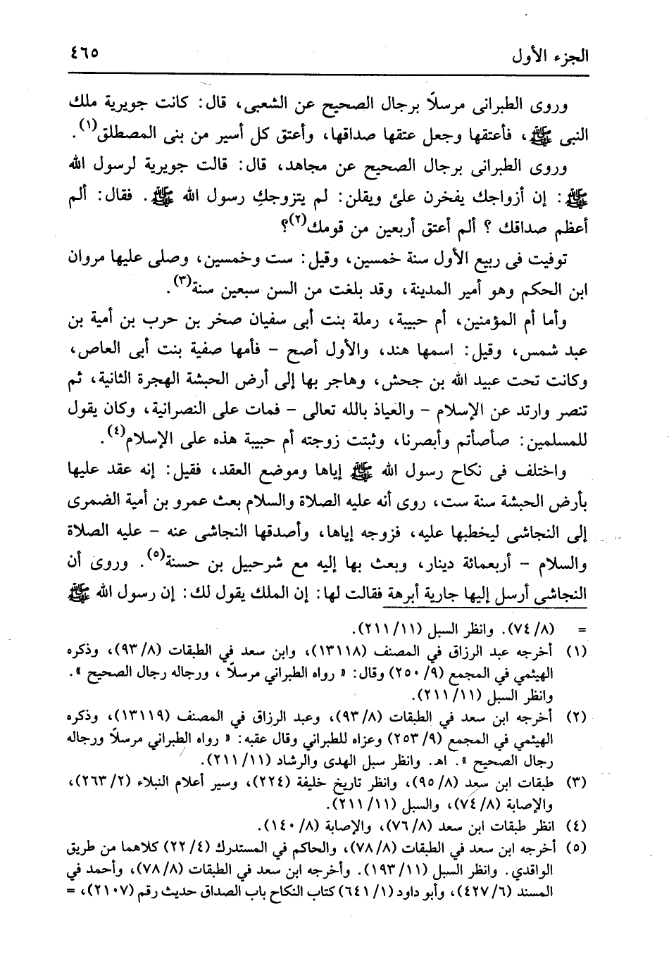 فَقَالَ ألم أعظم صداقك ألم أعتق أَرْبَعِينَ من قَوْمك توفيت فِي ربيع الأول سنة خمسين وَقيل سنة سِتّ وَخمسين وَصلى عَلَيْهَا مَرْوَان ابْن الحكم وَهُوَ أَمِير الْمَدِينَة وَقد بلغت من السن سبعين سنة وَأما أم الْمُؤمنِينَ أم حَبِيبَة رَملَة بنت أبي سُفْيَان صَخْر بن حَرْب بن أُميَّة بن عبد شمس وَقيل اسْمهَا هِنْد وَالْأول أصح فأمها صفسية بنت أبي الْعَاصِ وَكَانَت تَحت عبيد الله بن جحش وَهَاجَر بهَا إِلَى أَرض الْحَبَشَة الْهِجْرَة الثَّانِيَة ثمَّ تنصر وارتد عَن الْإِسْلَام وَالْعِيَاذ بِاللَّه تَعَالَى فَمَاتَ على النَّصْرَانِيَّة وَكَانَ يَقُول للْمُسلمين صأصأتم وأبصرنا وَثبتت زَوجته أم حَبِيبَة هَذِه على الْإِسْلَام وَاخْتلف فِي نِكَاح رَسُول الله