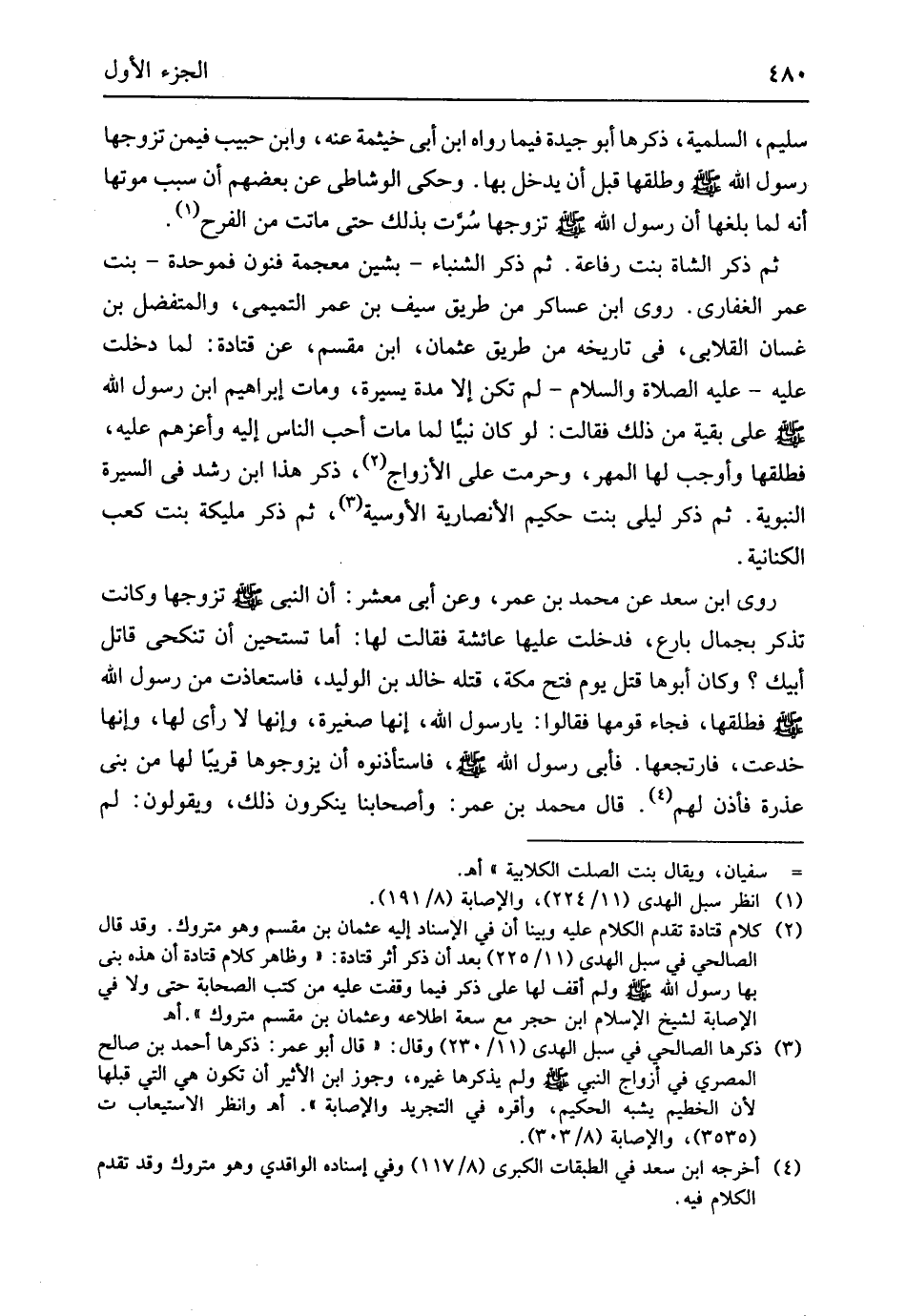 على بَقِيَّة من ذَلِك فَقَالَت لَو كَانَ نَبيا لما مَاتَ أحب النَّاس إِلَيْهِ وأعزهم عَلَيْهِ فَطلقهَا وَأوجب لَهَا الْمهْر وَحرمت على الْأزْوَاج ذكر هَذَا ابْن رشد فِي السِّيرَة النَّبَوِيَّة ثمَّ ذكر ليلى بنت حَكِيم الْأَنْصَارِيَّة الأوسية ثمَّ ذكر مليكَة بنت كَعْب الكنانية روى ابْن سعد عَن مُحَمَّد بن عمر وَعَن أبي معشر أَن النَّبِي