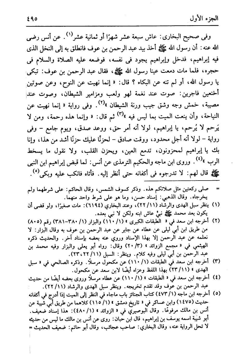 أَخذ بيد عبد الرَّحْمَن بن عَوْف فَانْطَلق بِهِ إِلَى النّخل الَّذِي فِيهِ إِبْرَاهِيم فَدخل وَإِبْرَاهِيم يجود فِي نَفسه فَوَضعه عَلَيْهِ الصَّلَاة وَالسَّلَام فِي حجره فَلَمَّا مَاتَ دَمَعَتْ عينا رَسُول الله