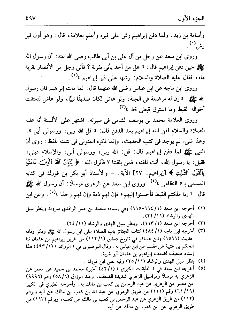 وَأُسَامَة بن زيد وَلما دفن إِبْرَاهِيم رش على قَبره وَأعلم بعلامة قَالَ وَهُوَ أول قبر رش وروى ابْن سعد عَن رجل من آل عَليّ بن أبي طَالب رَضِي الله عَنهُ إِن رَسُول الله