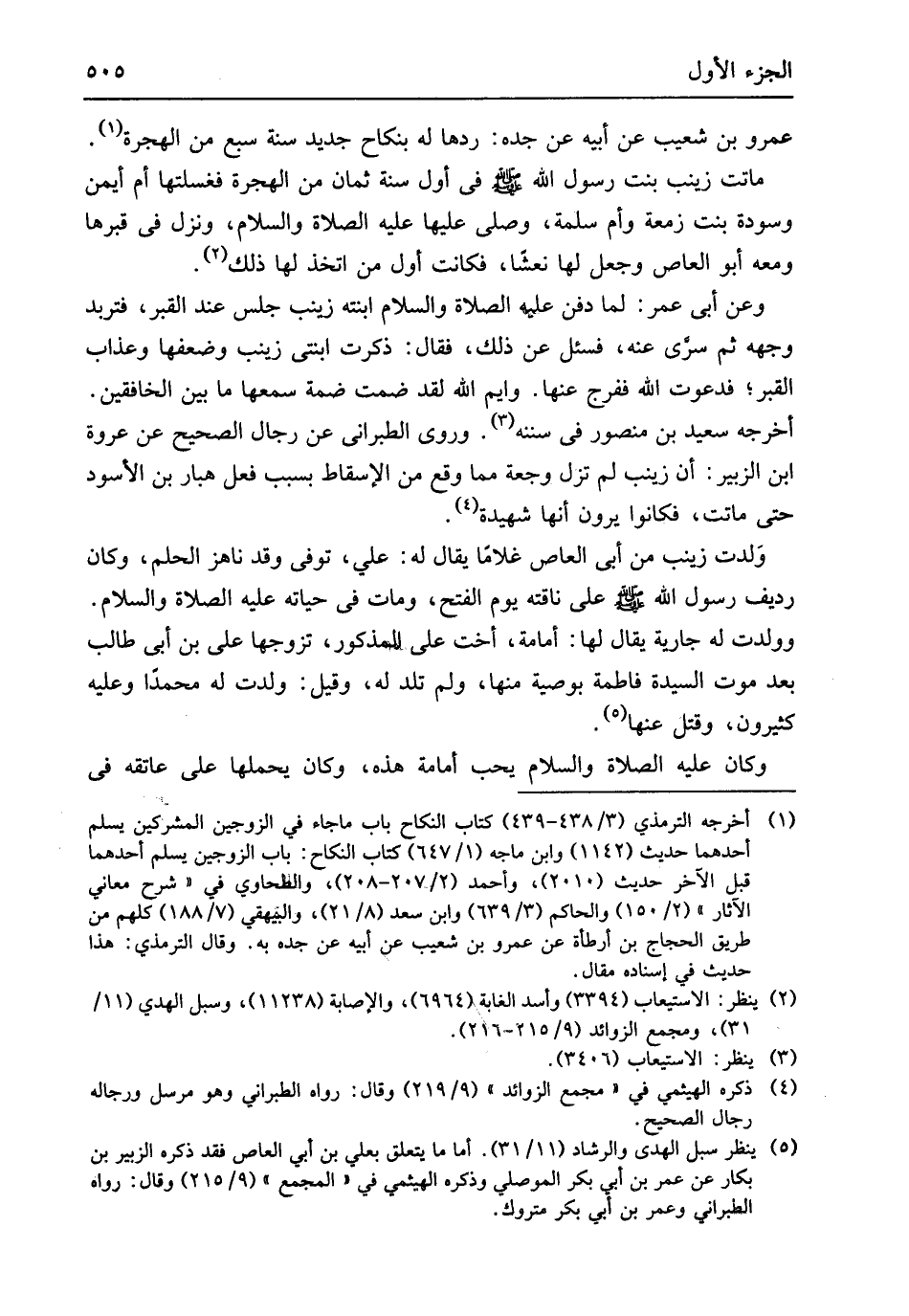 عَمْرو بن شُعَيْب عَن أَبِيه عَن جده ردهَا لَهُ بِنِكَاح جَدِيد سنة سبع من الْهِجْرَة مَاتَت زَيْنَب بنت رَسُول الله