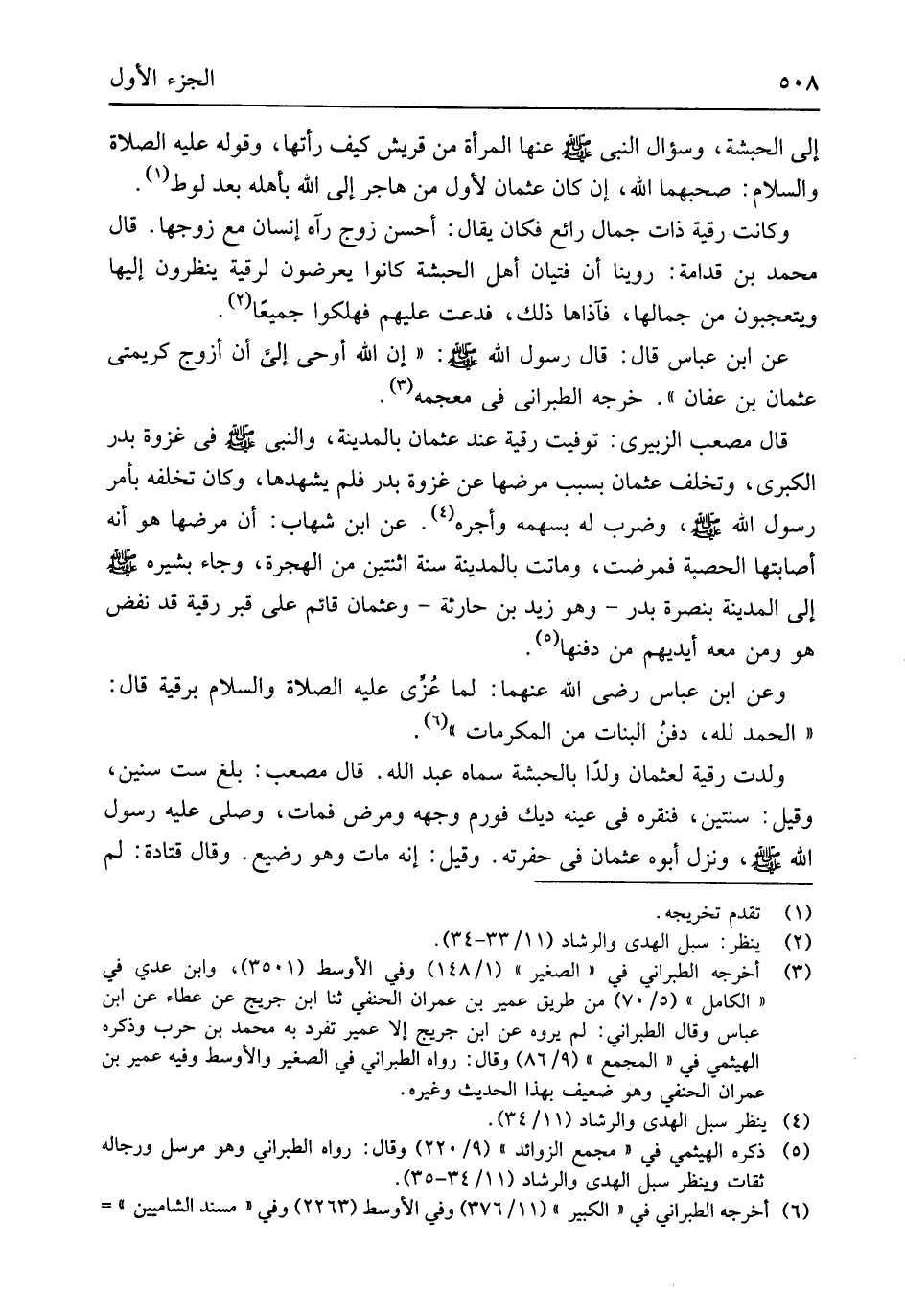 عَنْهَا الْمَرْأَة من قُرَيْش كَيفَ رأتها وَقَوله عَلَيْهِ الصَّلَاة وَالسَّلَام صحبهما الله إِن كَانَ عُثْمَان لأوّل من هَاجر إِلَى الله بأَهْله بعد لوط وَكَانَت رقية ذَات جمال رائع فَكَانَ يُقَال أحسن زوج رَآهُ إِنْسَان مَعَ زَوجهَا قَالَ مُحَمَّد بن قدامَة روينَا أَن فتيَان أهل الْحَبَشَة كَانُوا يعرضون لرقية ينظرُونَ إِلَيْهَا ويتجبون من جمَالهَا فآذاها ذَلِك فدعَتْ عَلَيْهِم فهلكوا جَمِيعًا عَن ابْن عَبَّاس قَالَ قَالَ رَسُول الله