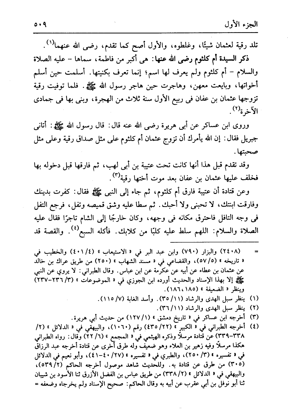تَلد رقية لعُثْمَان شَيْئا وغلطوه وَالْأول أصح كَمَا تقدم رَضِي الله عَنْهُمَا ذكر السيدة أم كُلْثُوم رَضِي الله عَنْهَا هِيَ أكبر من فَاطِمَة سَمَّاهَا عَلَيْهِ الصَّلَاة وَالسَّلَام أم كُلْثُوم وَلم يعرف لَهَا اسْم إِنَّمَا تعرف بكنيتها أسلمت حِين أسلم أخواتها وبايعت مَعَهُنَّ وَهَاجَرت حِين هَاجر رَسُول الله