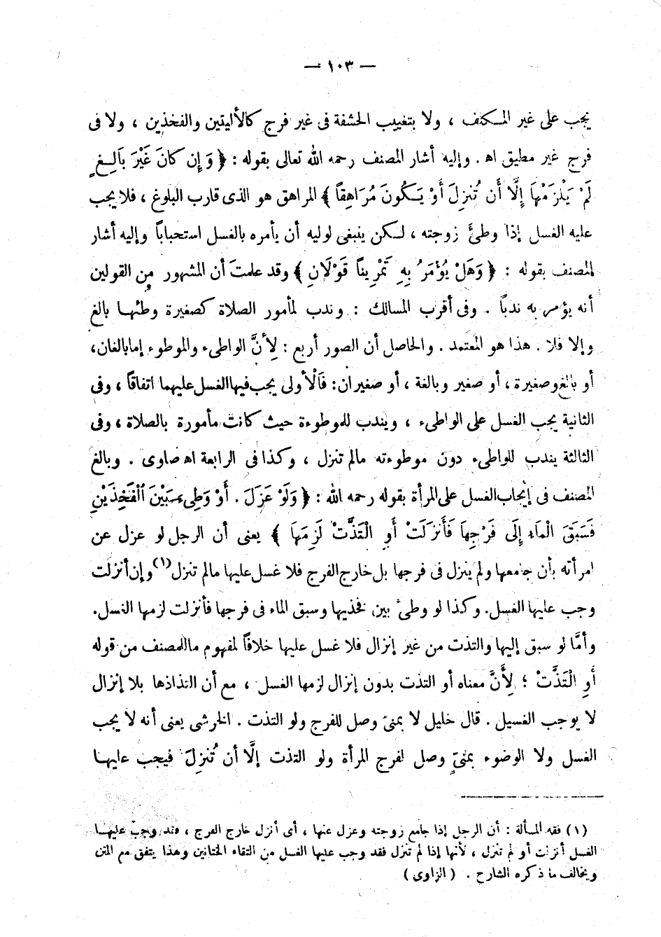 (¬1) فقه المسألة: أن الرجل إذا جامع زوجته وعزل عنها، أي أنزل خارج الفرج، فقد وجب عليها الغسل أنزلت أو لم تنزل، لأنها إذا لم تنزل فقد وجب عليها الغسل من التقاء الختانين وهذا يتفق مع المتن ويخالف ما ذكره الشارح. (الزاوي).