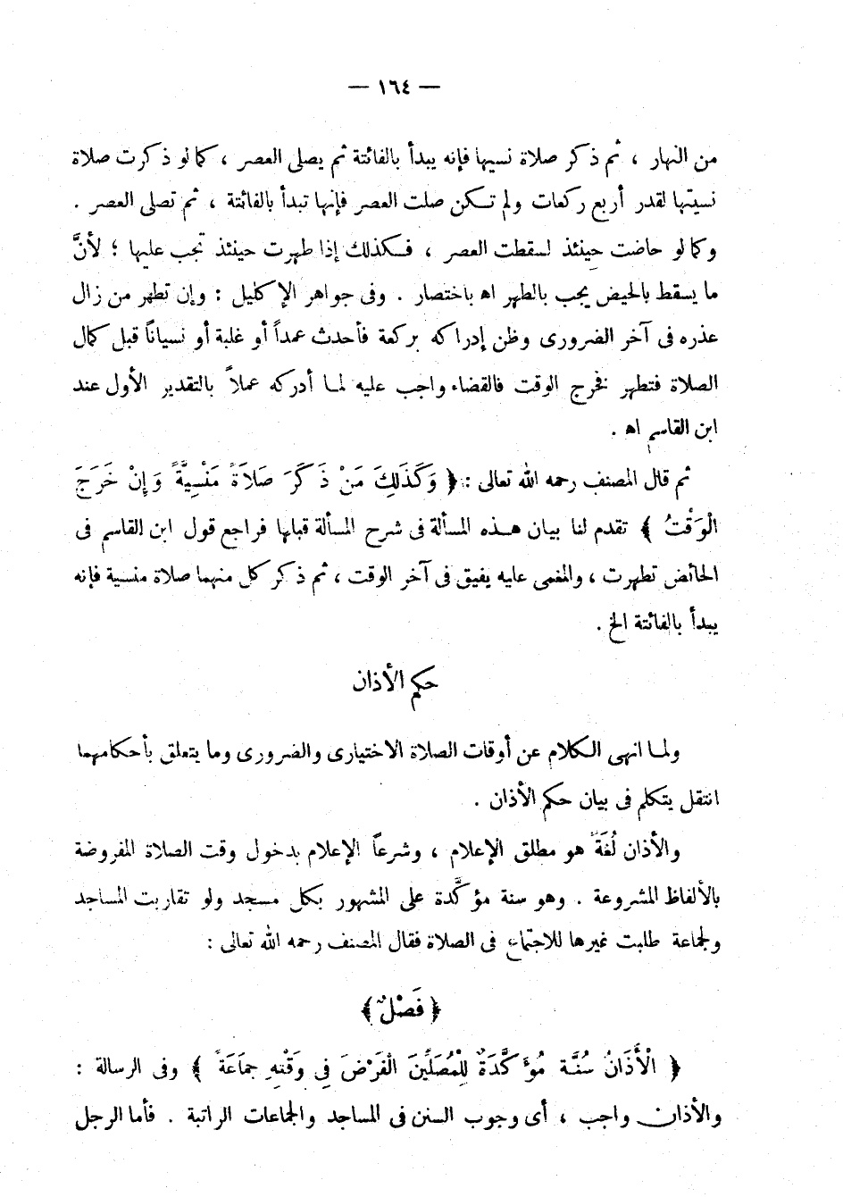ولما أنهى الكلام على أوقات الصلاة الاختياري والضروري وما يتعلق بأحكامهما انتقل يتكلم في بيان حكم الأذان.