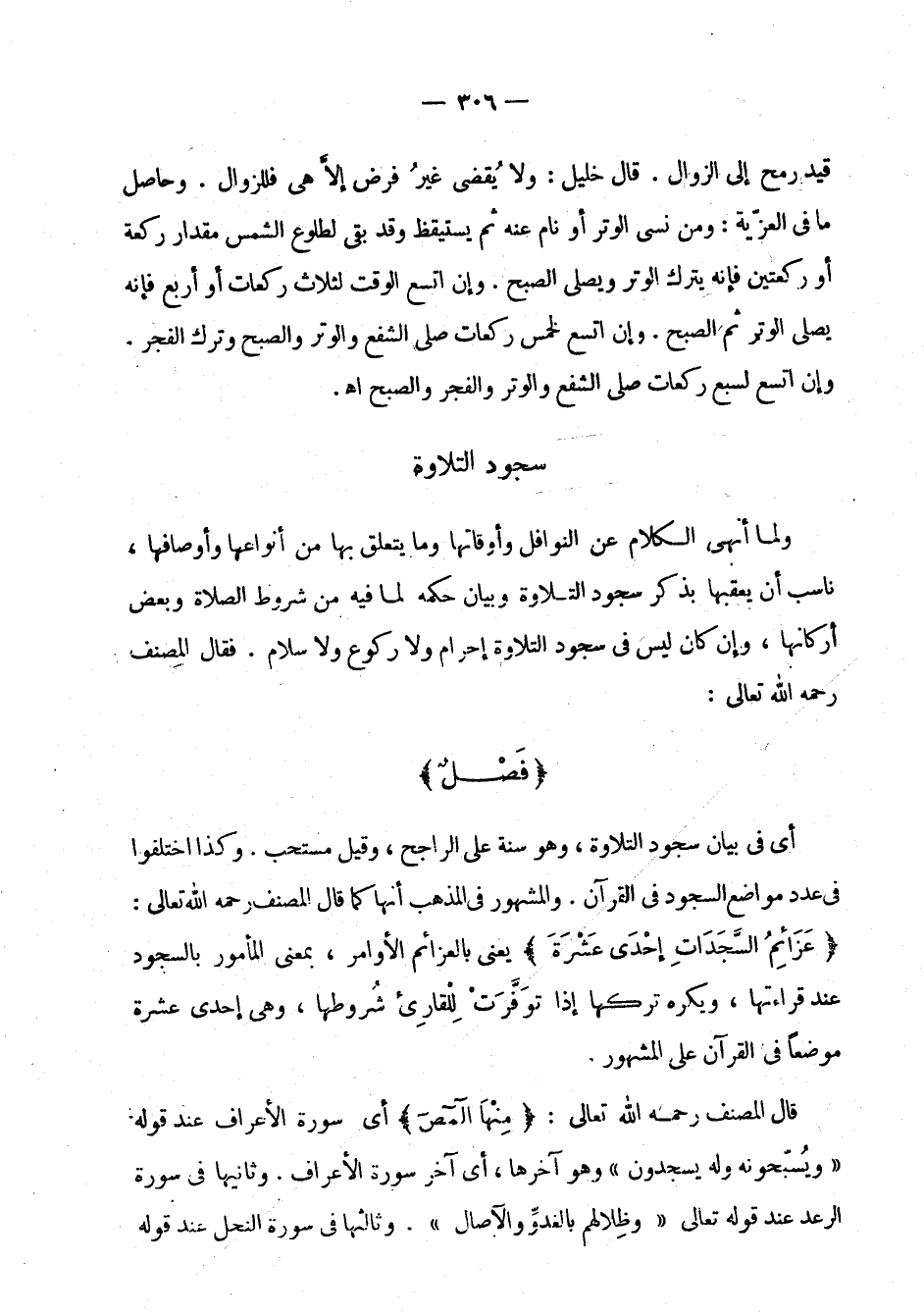 ولما أنهى الكلام على النوافل وأوقاتها وما يتعلق بها من أنواعها وأوصافها ناسب أن يعقبها بذكر سجود التلاوة وبيان حكمه لما فيه من شروط الصلاة وبعض أركانها، وإن كان ليس في سجود التلاوة إحرام ولا ركوع ولا سلام. فقال المصنف رحمه الله تعالى: