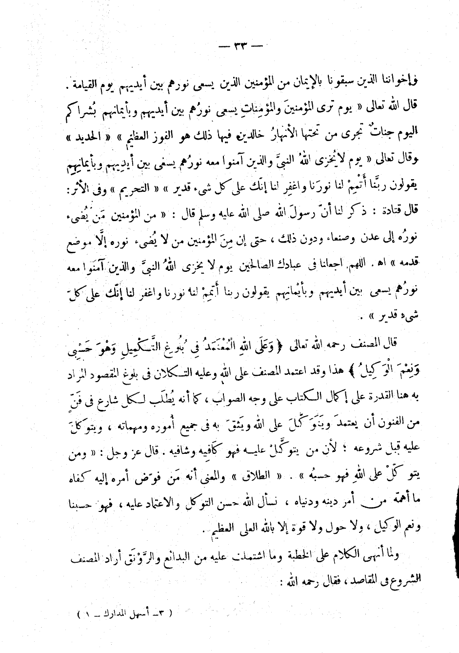 وإخواننا الذين سبقونا بالإيمان من المؤمنين يسعى نورهم بين أيديهم يوم القيامة. قال الله تعالى: {يَوْمَ تَرَى الْمُؤْمِنِينَ وَالْمُؤْمِنَاتِ يَسْعَى نُورُهُم بَيْنَ أَيْدِيهِمْ وَبِأَيْمَانِهِم بُشْرَاكُمُ الْيَوْمَ جَنَّاتٌ تَجْرِي مِن تَحْتِهَا الْأَنْهَارُ خَالِدِينَ فِيهَا ذَلِكَ هُوَ الْفَوْزُ الْعَظِيمُ} [الحديد: 12] وقال تعالى: {يَوْمَ لَا يُخْزِي اللَّهُ النَّبِيَّ وَالَّذِينَ آمَنُوا مَعَهُ نُورُهُمْ يَسْعَى بَيْنَ أَيْدِيهِمْ وَبِأَيْمَانِهِمْ يَقُولُونَ رَبَّنَا أَتْمِمْ لَنَا نُورَنَا وَاغْفِرْ لَنَا إِنَّكَ عَلَى كُلِّ شَيْءٍ قَدِيرٌ} [التحريم: 8] وفي الأثر: قال قتادة: ذكر لنا أن رسول الله صلى الله عليه وسلم قال: " من المؤمنين من يضيء نوره إلى عدن وصنعاء ودون ذلك، حتى إن من المؤمنين من لا يضيء نوره إلا موضع قدمه " اهـ. اللهم اجعلنا في عبادك الصالحين يوم لا يخزي الله النبي والذين آمنوا معه نورهم يسعى بين أيديهم وبأيمانهم يقولون ربنا أتمم لنا نورنا واغفر لنا إنك على كل شيء قدير.
