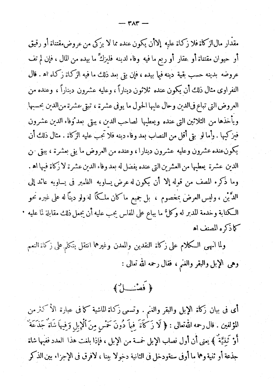 في زكاة الماشية وهي الإبل والبقر والغنم