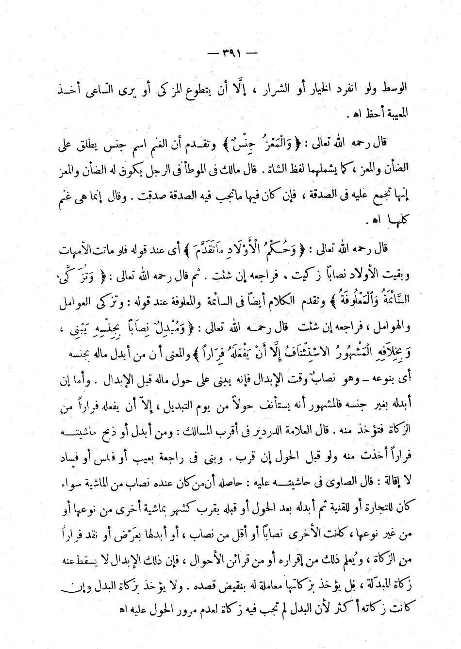 قال رحمه الله تعالى: " وحكم الأولاد ما تقدم " أي عند قوله فلو ماتت الأمهات وبقيت الأولاد نصابا زكيت، فراجعه إن شئت. ثم قال رحمه الله تعالى: " وتزكى السائمة والمعلوفة " وتقدم الكلام أيضا في السائمة والمعلوفة عند قوله: وتزكى العوامل والهوامل، فراجعه إن شئت، قال رحمه الله تعالى: " ومبدل نصابا