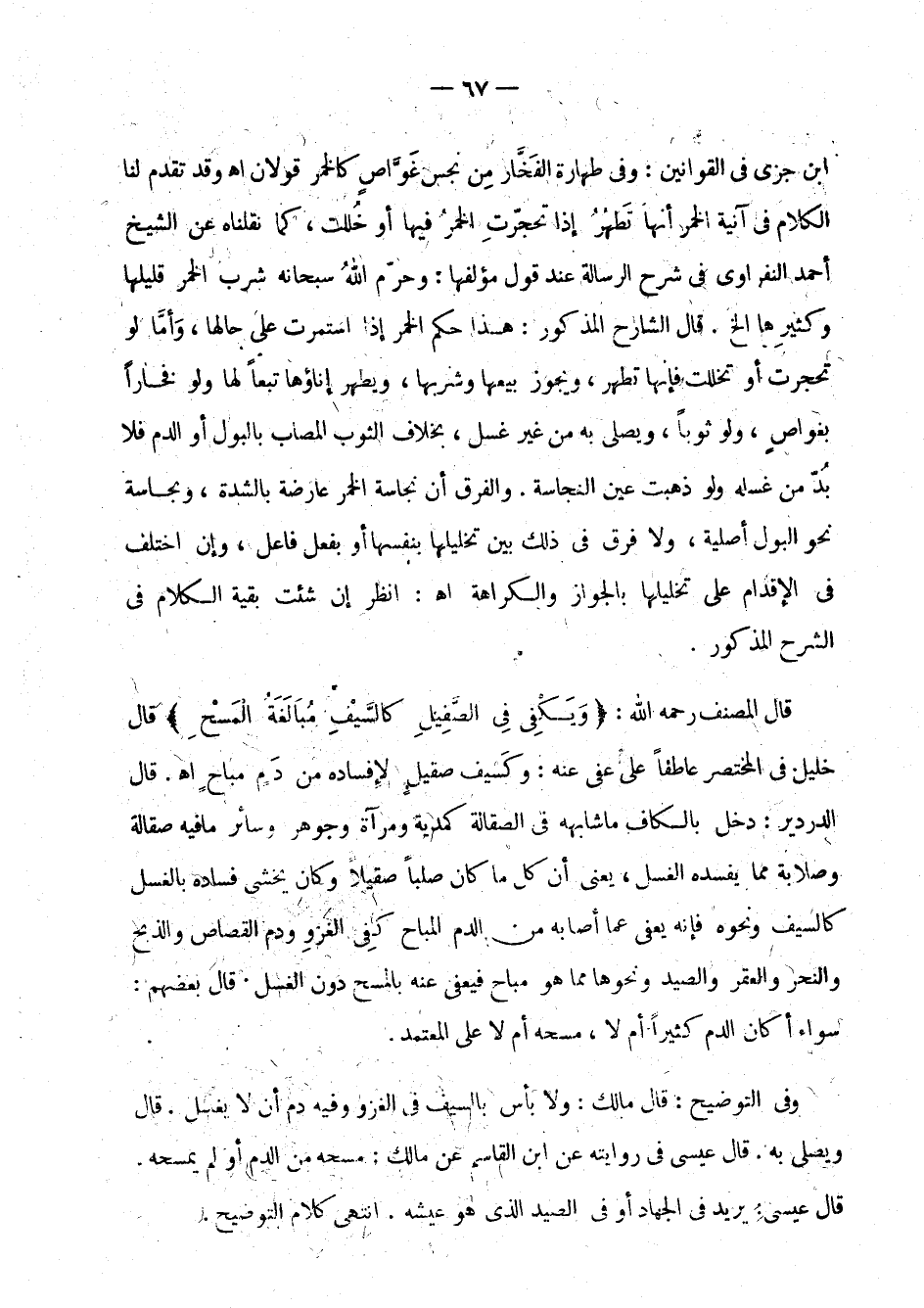 قال المصنف رحمه الله: " ويكفي في الصقيل كالسيف مبالغة المسح " قال خليل في المختصر عاطفا على عفي عنه: وكسيف صقيل لإفساده من دم مباح اهـ.