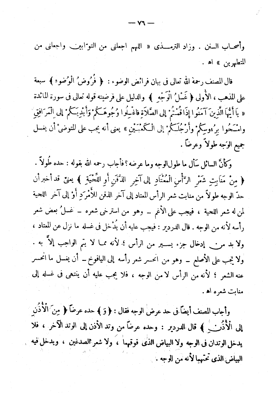 الْمَرَافِقِ وَامْسَحُواْ بِرُؤُوسِكُمْ وَأَرْجُلَكُمْ إِلَى الْكَعْبَينِ} [المائدة: 6] يعني أنه يجب على المتوضئ أن يغسل جميع الوجه طولا وعرضا.