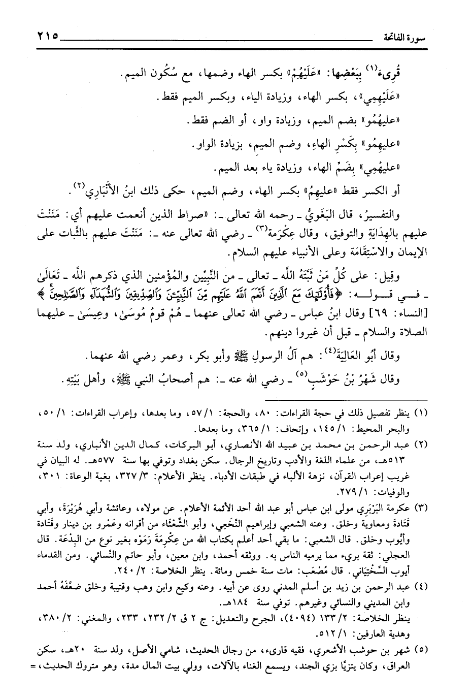 والتفسيرُ، قال البَغَويُّ - رَحِمَهُ اللهُ تعالى -: «صراط الذين أنعمت عليهم أي: مَنَنْتَ عليهم بِالهِدَايَةِ والتوفيق، وقال عِكْرِمة - رضي الله تعالى عنه -: مَنَنْتَ عليهم بالثَّبات على الإيمان والاسْتِقَامَةِ وعلى الأنبياء عليهم السلام.