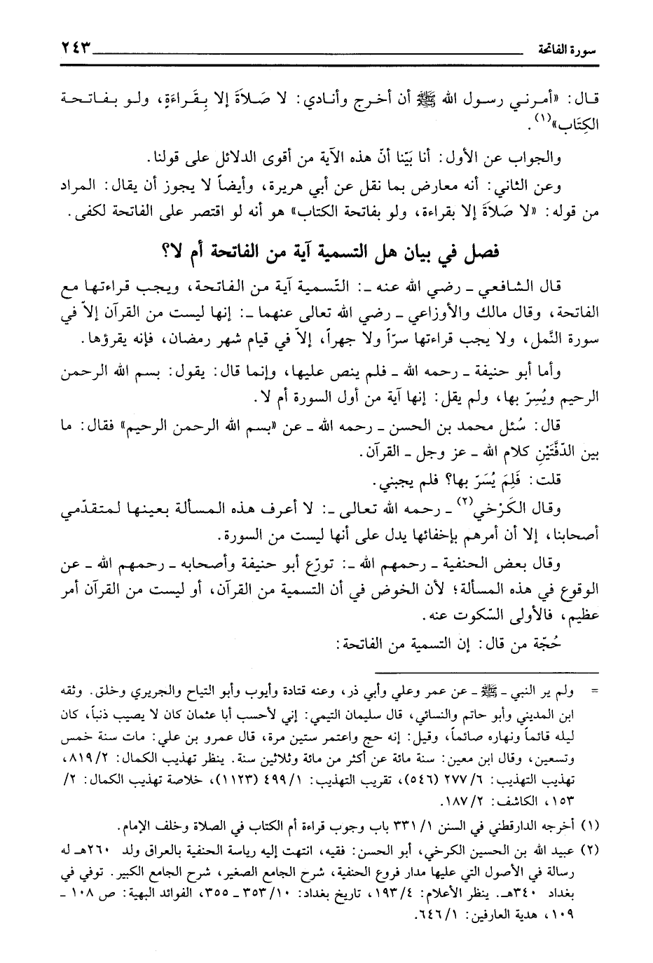 فصل في بيان هل التسمية آية من الفاتحة أم لا؟