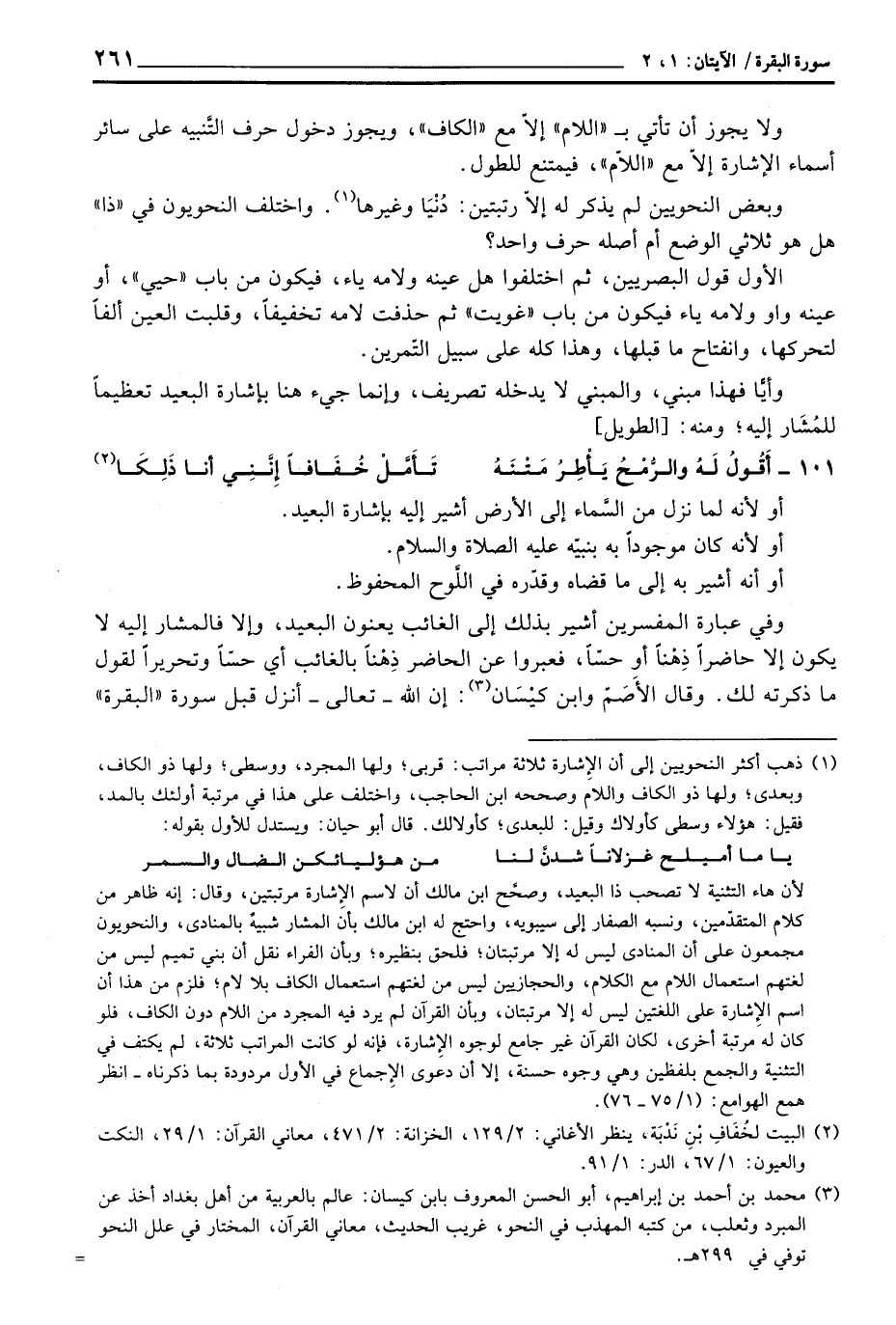 وفي عبارة المفسرين أشير بذلك إلى الغائب يعنون البعيد، وإلا فالمشار إليه لا يكون إلا حاضراً ذِهْناً أو حِسّاً، فعبروا عن الحاضر ذِهْناً بالغائب أي حسّا وتحريراً لقول ما ذكرته لك. وقال الأصَمّ وابن كيْسَان: إن الله - تعالى - أنزل قبل سورة «البقرة»