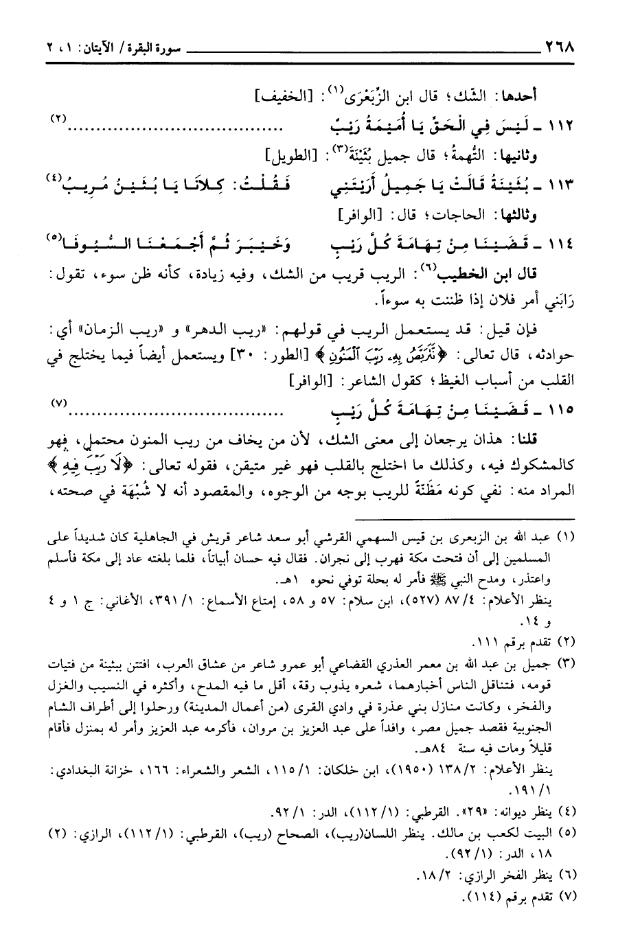 113 - بُثَيْنَةُ قَالَتْ يَا جَمِيلُ أَرَيْتَنِي ... فَقُلْتُ: كِلاَنَا يَا بُثَيْنُ مُرِيبُ