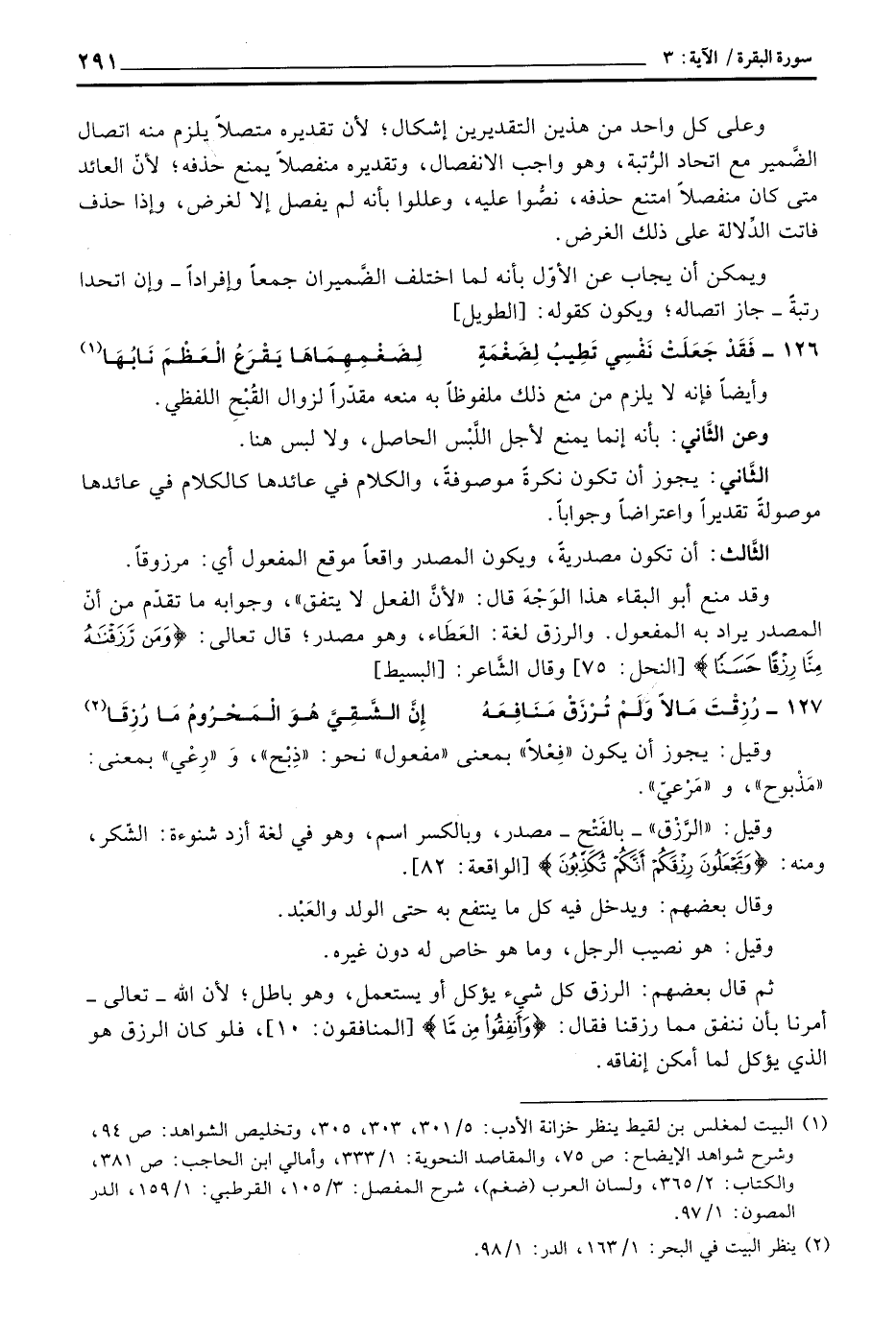 وعلى كل واحد من هذين التقديرين إشكال؛ لأن تقديره متصلاً يلزم منه اتصال الضَّمير مع اتحاد الرُّتبة، وهو واجب الانفصال، وتقديره منفصلاً يمنع حذفه؛ لأنَّ العائد متى كان منفصلاً امتنع حذفه، نصُّوا عليه، وعللوا بأنه لم يفصل إلا لغرض، وإذا حذف فاتت الدلالة على ذلك الغرض.