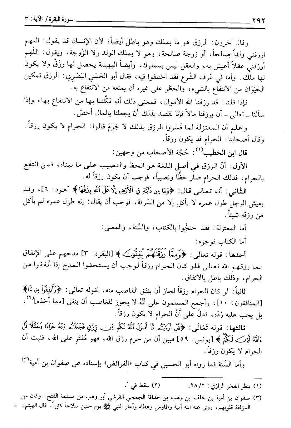 ثانياً: لو كان الحرام رزقاً لجاز أن ينفق الغاصب منه، لقوله تعالى: {مِن مَّا رَزَقْنَاكُمْ} [المنافقون: 10] ، وأجمع المسلمون على أنَّهُ لا يجوز للغاصب أن ينفق [مما أخذه] ، بل يجب رَدّه، فدلّ على أنَّ الحرام لا يكون رزقاً.