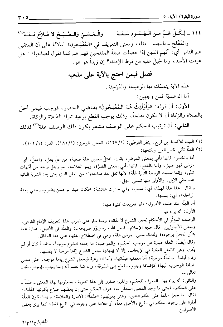 الأول: أن قوله: «وَأُوْلَئِكَ هُمُ المُفْلِحُونَ» يقتضي الحصر، فوجب فيمن أخل بالصلاة والزكاة أن لا يكون مفلحاً، وذلك يوجب القطع بوعيد تارك الصَّلاةِ والزكاة.