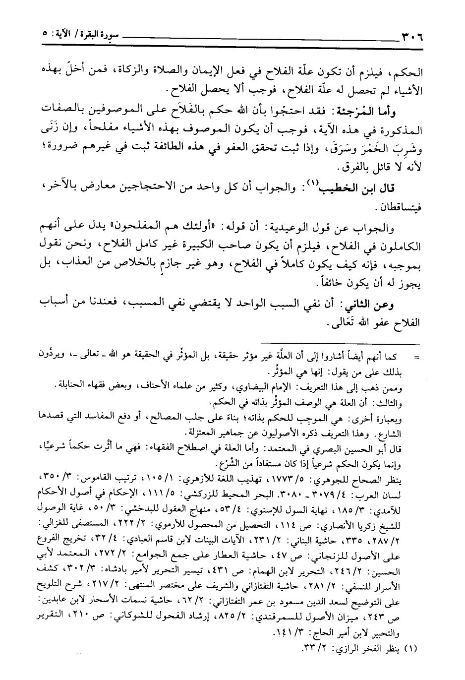 الحكم، فيلزم أن تكون علّة الفلاح في فعل الإيمان والصلاة والزكاة، فمن أخلّ بهذه الأشياء لم تحصل له علّة الفلاح، فوجب إلا يحصل الفلاح.