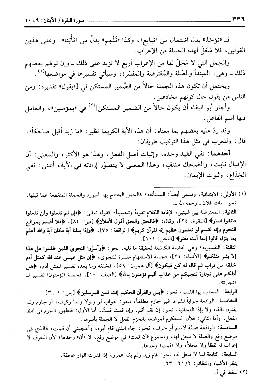أحدهما: نفي القيد وحده، وإثبات أصل الفعل، وهذا هو الأكثر، والمعنى: أن الإقبال ثابت، والضحك منتفٍ، وهذا المعنى لا يتصوّر إرادته في الآية، أعني: نفي الخِدَاع، وثبوت الإيمان.