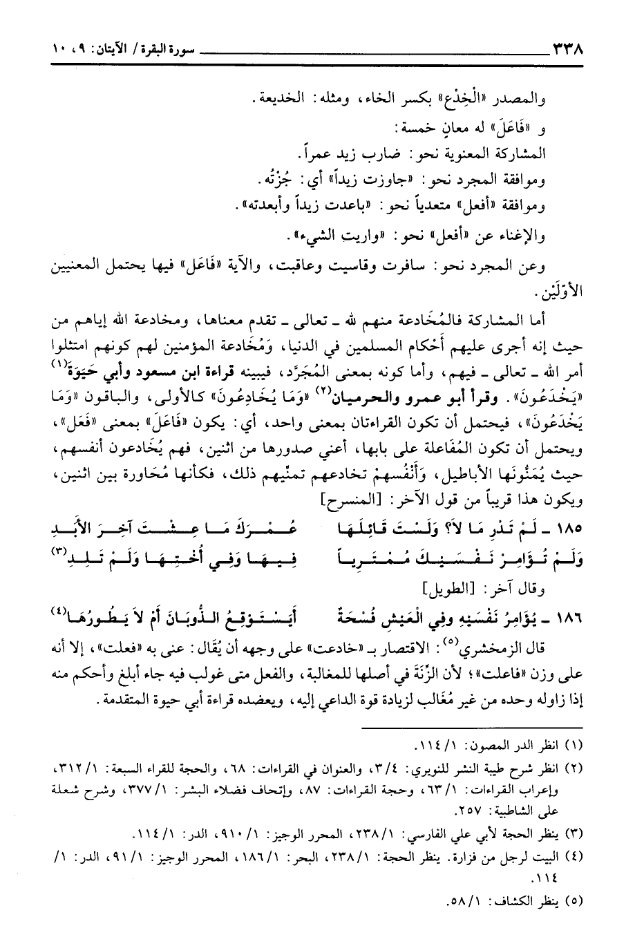 وعن المجرد نحو: سافرت وقاسيت وعاقبت، والآية «فَاعَل» فيها يحتمل المعنيين الأوّلَيْن.