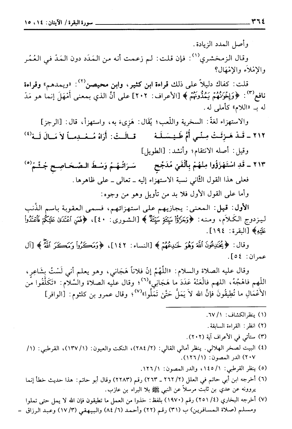 وقال عَلَيْهِ الصَّلَاة وَالسَّلَام ُ: «اللهُمَّ إنّ فلاناً هَجَاني، وهو بعلم أني لَسْتُ بِشَاعِرٍ، اللهم فاهجُهُ، اللهم فالْعَنْهُ عَدَدَ ما هَجَانِي» ؛ وقال عليه الصلاة والسَّلام: «تَكَلَّفُوا من الأَعْمَالِ ما تُطِيقونَ فإنَّ الله لاَ يَمَلُّ حَتَّى تَمَلُّوا» ؛ وقال عمرو بن كلثوم: [الوافر]