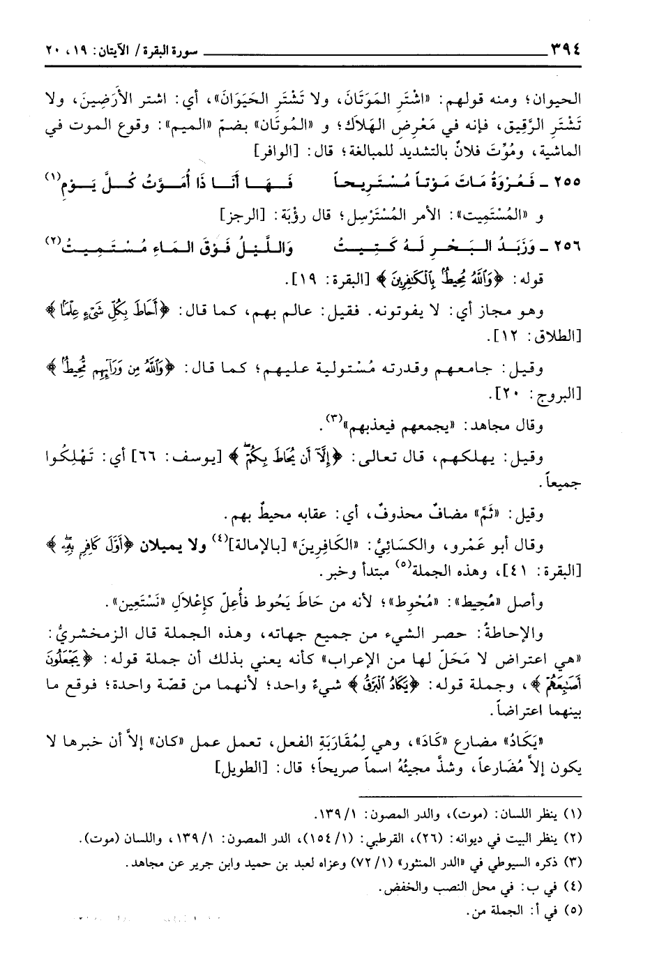 والإحاطةُ: حصر الشيء من جميع جهاته، وهذه الجملة قال الزمخشريُّ: «هي اعتراض لا مَحَل لها من الإعراب» كأنه يعني بذلك أن جملة قوله: {يَجْعَلُونَ أَصْابِعَهُمْ} ، وجملة قوله: {يَكَادُ البرق} شيءٌ واحد؛ لأنهما من قصّة واحدة؛ فوقع ما بينهما اعتراضاً.