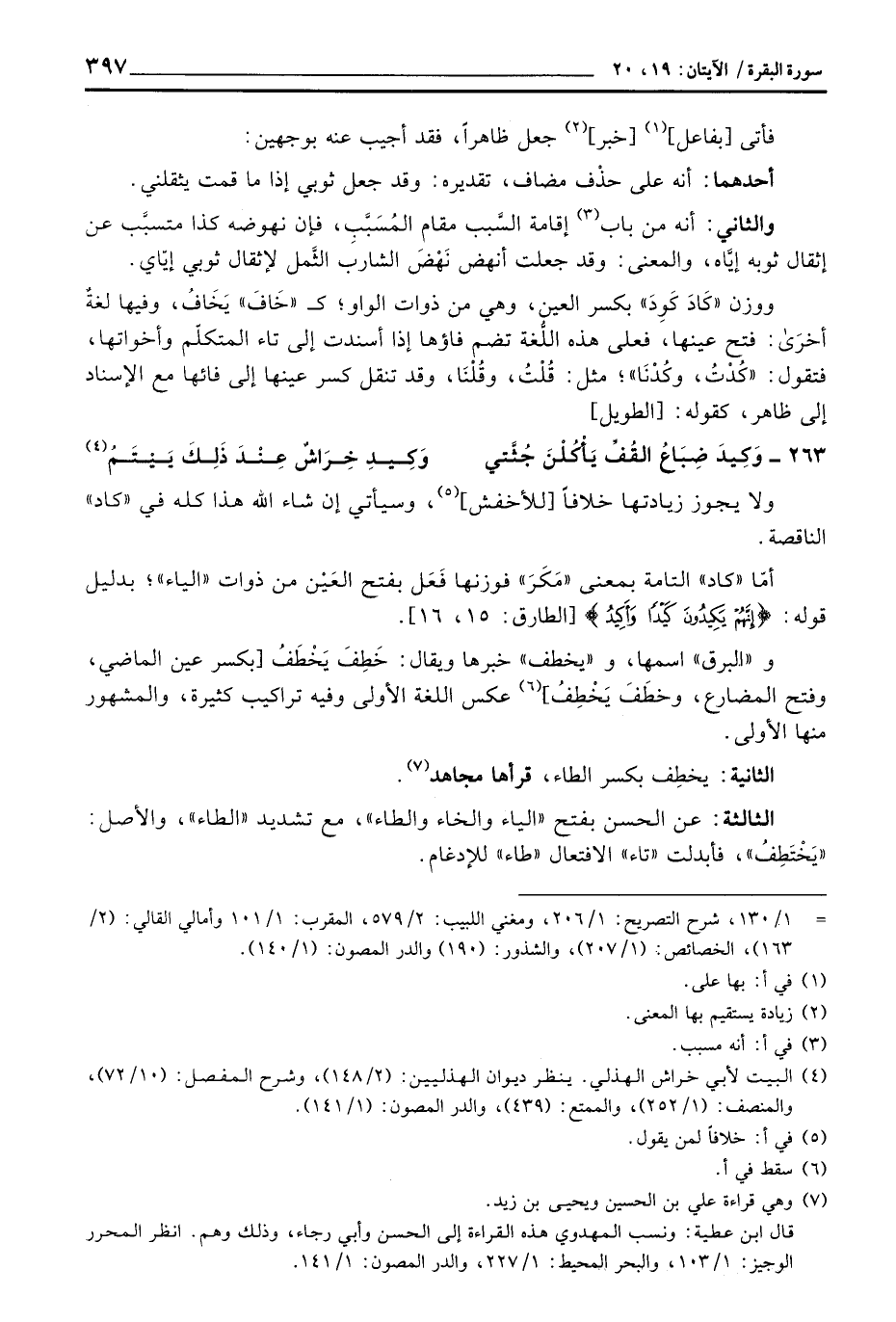 263 - وَكِيدَ ضِبَاعُ القُفِّّ يَأْكُلْنَ جُثَّتي ... وَكِيدَ خِرَاشٌ عِنْدَ ذَلِكَ يَيْتَمُ