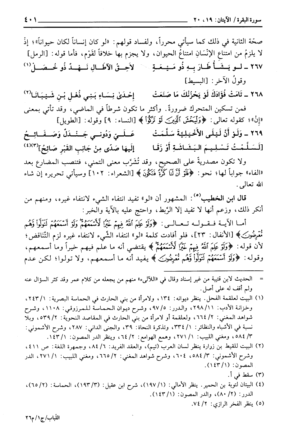 قال ابن الخطيب: المشهور أن» لو «تفيد انتفاء الشيء لانتفاء غيره، ومنهم من أنكر ذلك، وزعم أنها لا تفيد إلا الرَّبط، واحتج عليه بالآية والخبر: