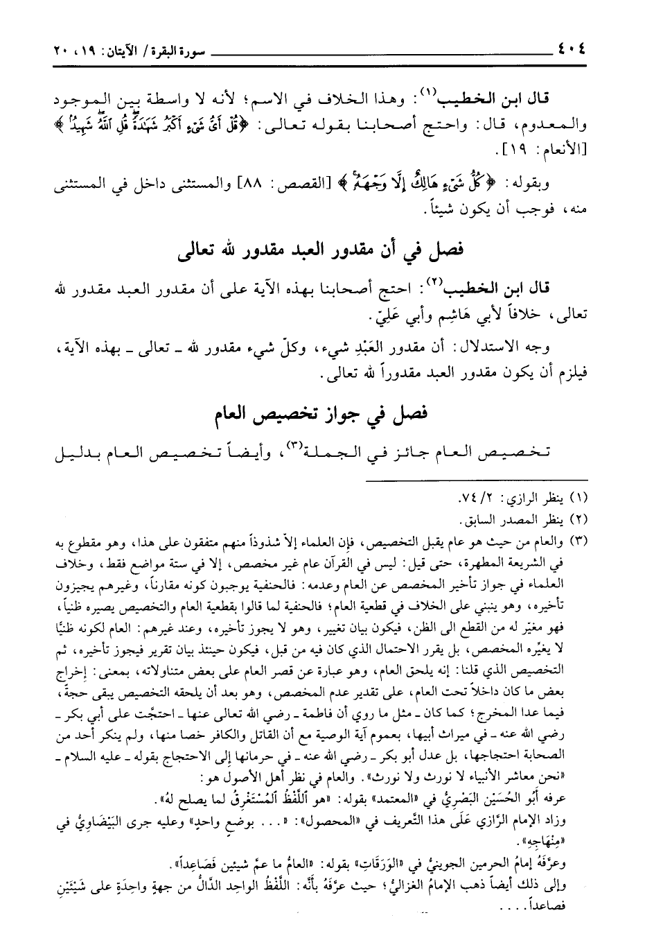 قال ابن الخطيب: احتج أصحابنا بهذه الآية على أن مقدور العبد مقدور لله تعالى، خلافاً لأبي هَاشِم وأبي عَلِيّ.