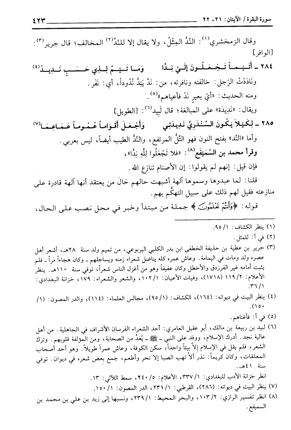 وقال الزمخشري: النِّدُّ المِثْلُ: ولا يقال إلا للنِّدِّ المخالف؛ قال جرير: [الوافر]