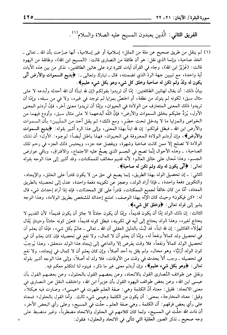 الفريق الثاني: الَّذين يعبدون المسيح عَلَيْهِ الصَّلَاة وَالسَّلَام ُ.