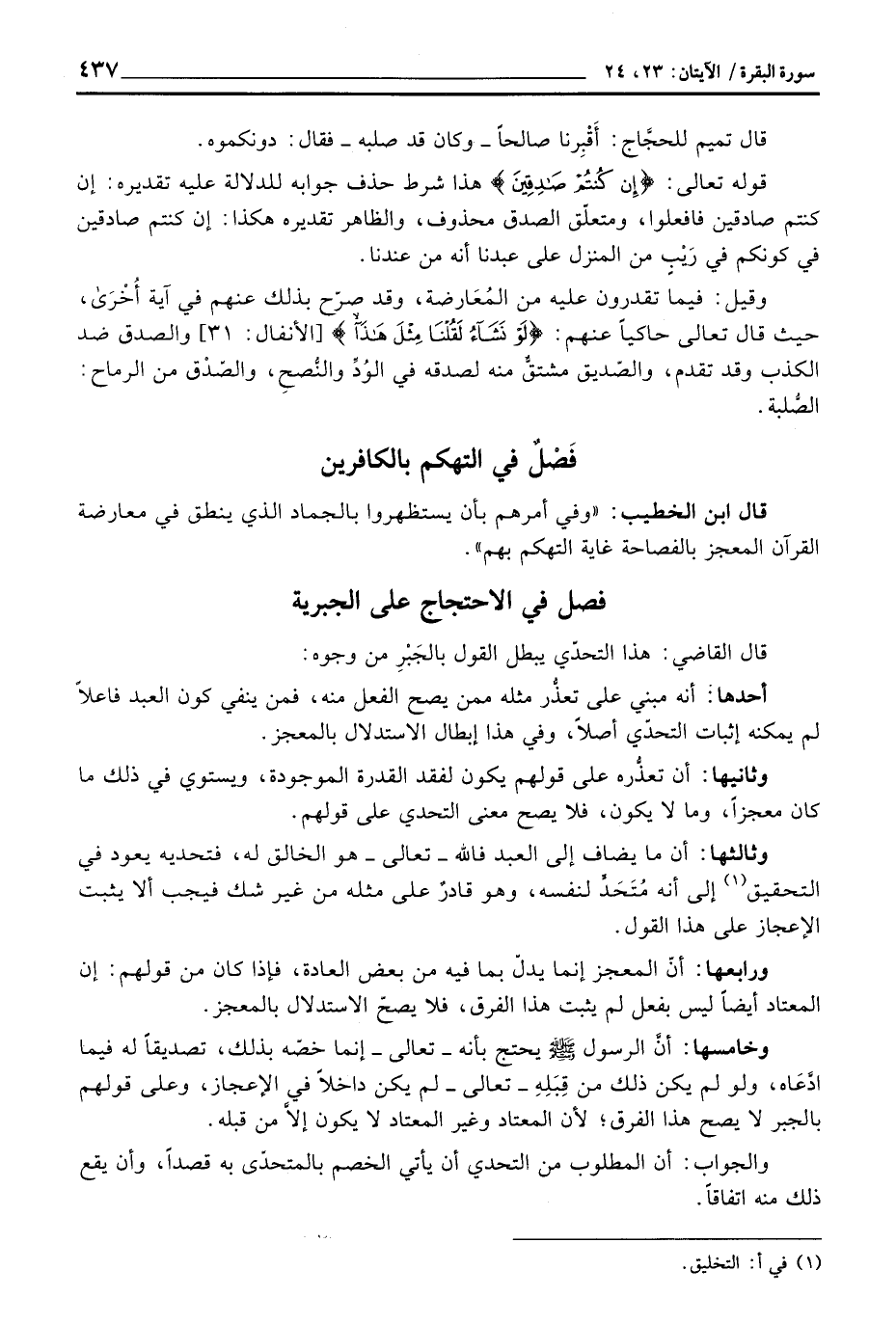 فصل في الاحتجاج على الجبرية