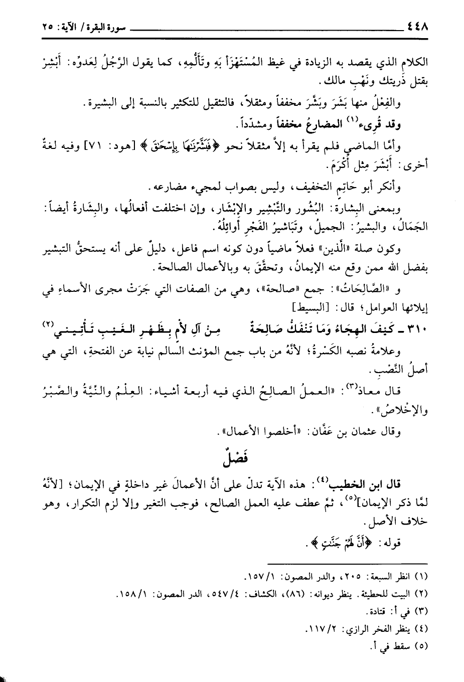 قال ابن الخطيب: هذه الآية تدلّ على أن الأعمالَ غير داخلةٍ في الإيمان؛ [لأنَّهُ لمَّا ذكر الإيمان] ، ثمَّ عطف عليه العمل الصالح، فوجب التغير وإلا لزم التكرار، وهو خلاف الأصل.