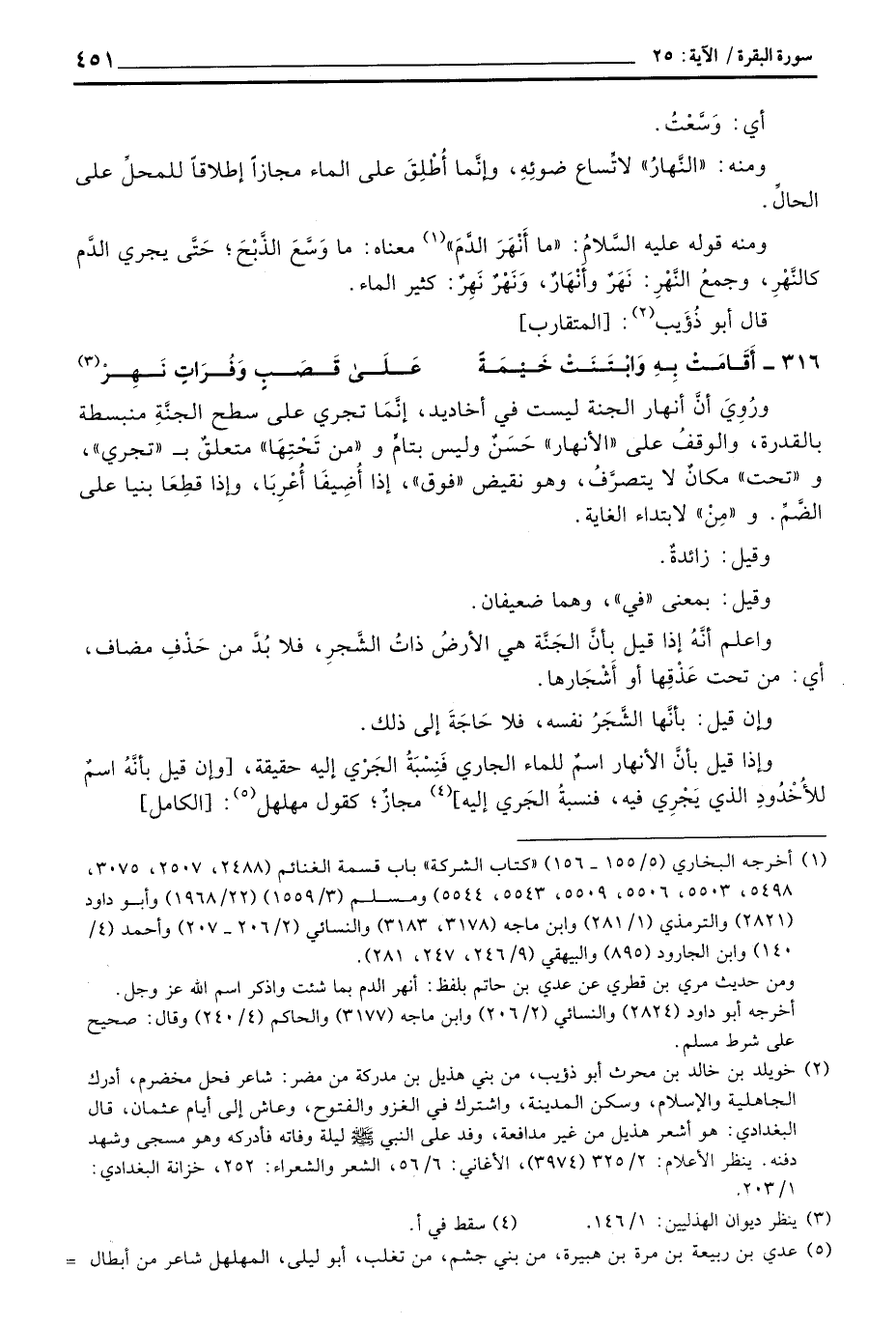 ومنه:» النَّهارُ «لاتِّساع ضوئِهِ، وإنَّما أُطْلِقَ على الماء مجازاً إطلاقاً للمحلِّ على الحالِّ.