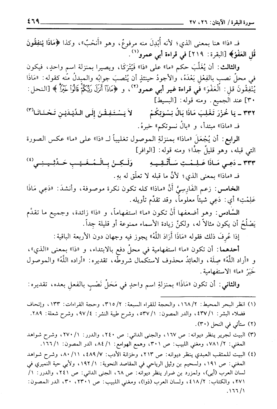 ف «ذا» هنا بمعنى الذي؛ لأنه أُبْدِلَ منه مرفوعٌ، وهو «أَنْحبٌ» ، وكذا {مَاذَا يُنفِقُونَ قُلِ العفو} [البقرة: 219] في قراءة أبي عمرو.